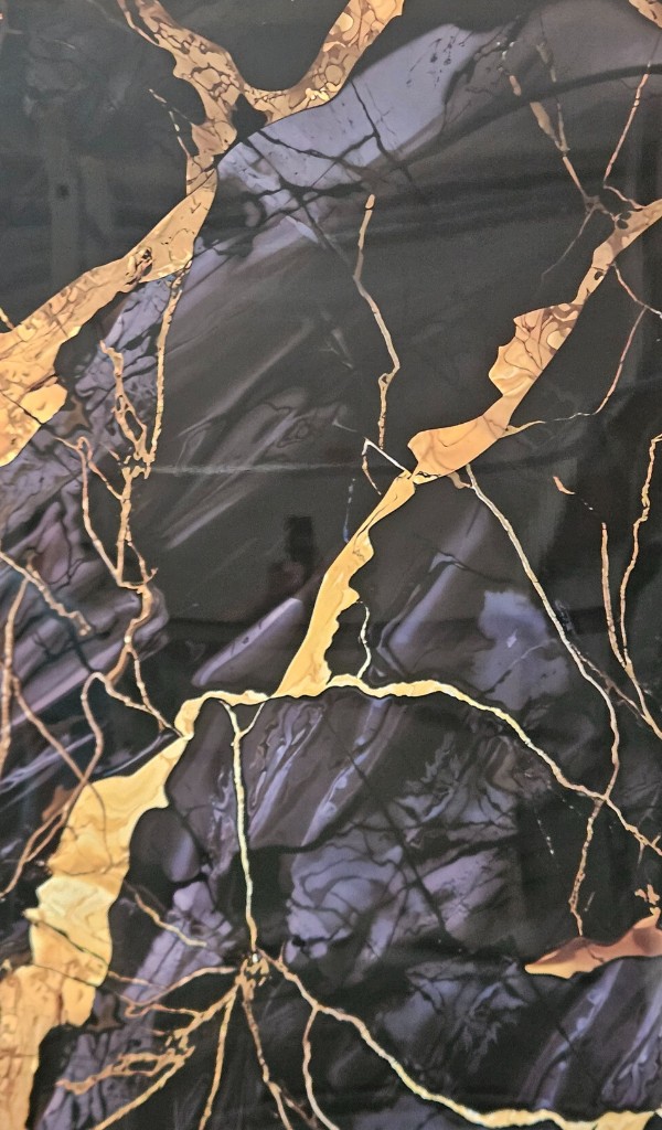 Az Black Inferno PVC falburkolat a természetes márvány eleganciáját ötvözi a modern anyaghasználat előnyeivel, UV-nyomtatott, magasfényű felülettel, amely kimagasló tartósságot és prémium megjelenést biztosít.