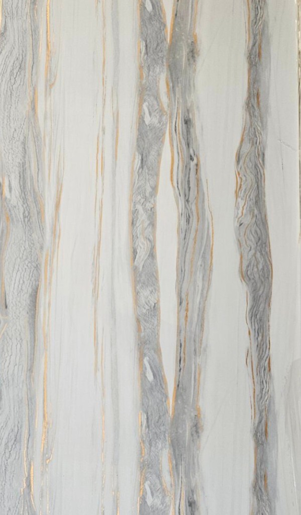 Az Royal Stream PVC falburkolat a természetes márvány eleganciáját ötvözi a modern anyaghasználat előnyeivel, UV-nyomtatott, magasfényű felülettel, amely kimagasló tartósságot és prémium megjelenést biztosít.