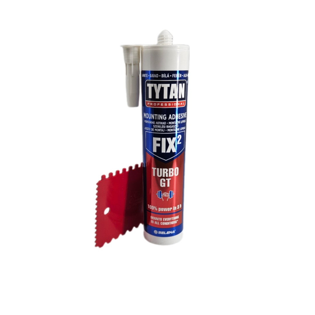 A Tytan FIX² Turbo GT egy professzionális, rendkívül gyors kötésű, rugalmas szerelőragasztó, amely ideális különféle építőipari és belsőépítészeti alkalmazásokhoz. A GT (Grab & Tack) technológiának köszönhetően azonnali tapadást biztosít, így nincs szükség hosszas megtámasztásra vagy leszorításra a munkadarabok rögzítéséhez.